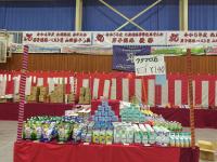 食料品売場では、新米、味噌、お茶、ご当地カップラーメンを販売しています。
